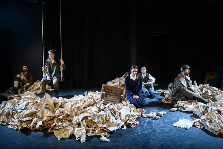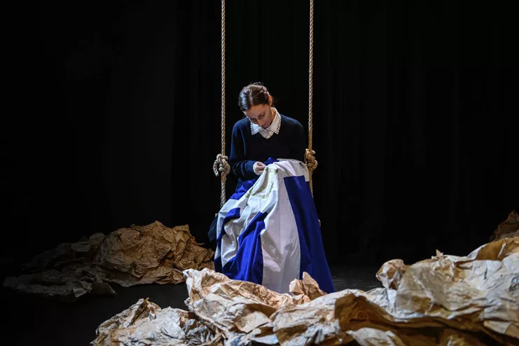 Ένα έργο με ισχυρό πολιτικό πρόσημο για τις παιδοπόλεις, που ίδρυσε η βασίλισσα Φρειδερίκη κατά τη διάρκεια του Εμφυλίου Πολέμου, κι άλλα ιστορικά γεγονότα που διαμόρφωσαν τη σύγχρονη ελληνική πραγματικότητα. Ένας Κοινοτάρχης που κρατάει βίτσα και μιλάει με «νι» και «λι», μια απροσάρμοστη Τρόφιμος που της αρέσει να τρέχει, μια ανύπαντρη Ομαδάρχισσα που αμφιταλαντεύεται, μια κουρασμένη Μητέρα που ψάχνει ασταμάτητα με σεντόνια στα χέρια, ένας μαλλιαρός Άντρας που κάνει ισορροπία, μια Βασίλισσα με γούνα και υπαρξιακές αγωνίες, μια Ρωσίδα χορεύτρια που έπαιξε τον μαύρο κύκνο στα Μπολσόι, ένας Δημοσιογράφος που προσπαθεί να βρει την αλήθεια, ένας Χωροφύλακας που σιχαίνεται το κρύο και σέρνει τα πόδια του, αυτός που μιλάει με ντοκουμέντα, μια Ελληνοαμερικάνα που ψάχνει από πού κρατάει η σκούφια της, ένας Αριστερόχειρας που στρώνει το κρεβάτι του φάκελο και δεν μπορεί να πει το «ρ», ένας κανονικός Φαντάρος με αρβύλες και όπλο και ο Ντιμίτρι ή Δημήτρης, ένας ερωτευμένος Πολυτεχνίτης που πήγε από την Κόνιτσα στην Τασκένδη, συνομιλούν και διεκδικούν τη θέση τους στην Ιστορία.