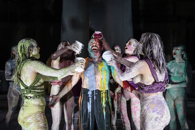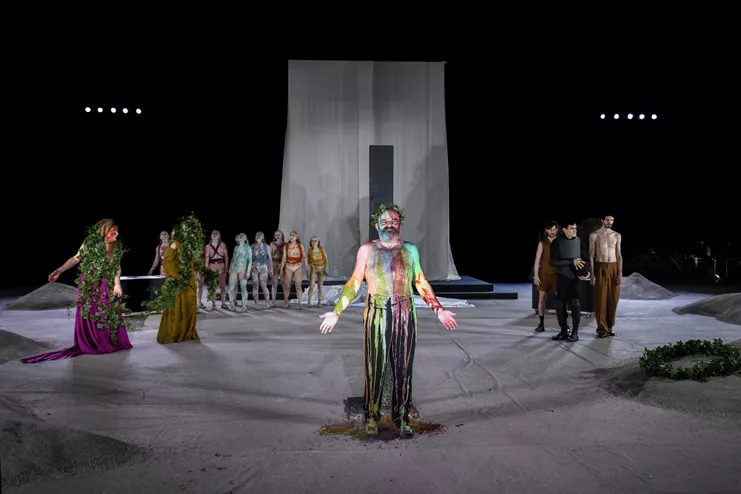 Σκηνοθέτης που έχει παραδώσει εξαιρετικά ενδιαφέρουσες δουλειές, ο Θάνος Παπακωνσταντίνου καταθέτει εδώ μια εντυπωσιακή στην όψη αλλά επιδερμική εντέλει ανάγνωση της ευριπίδειας τραγωδίας ως περφόρμανς ενός queer Διόνυσου. Διαβάστε ολόκληρη την κριτική