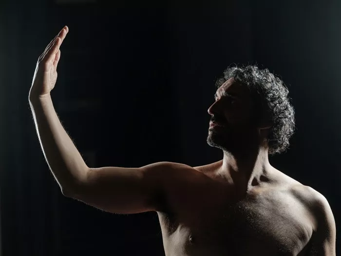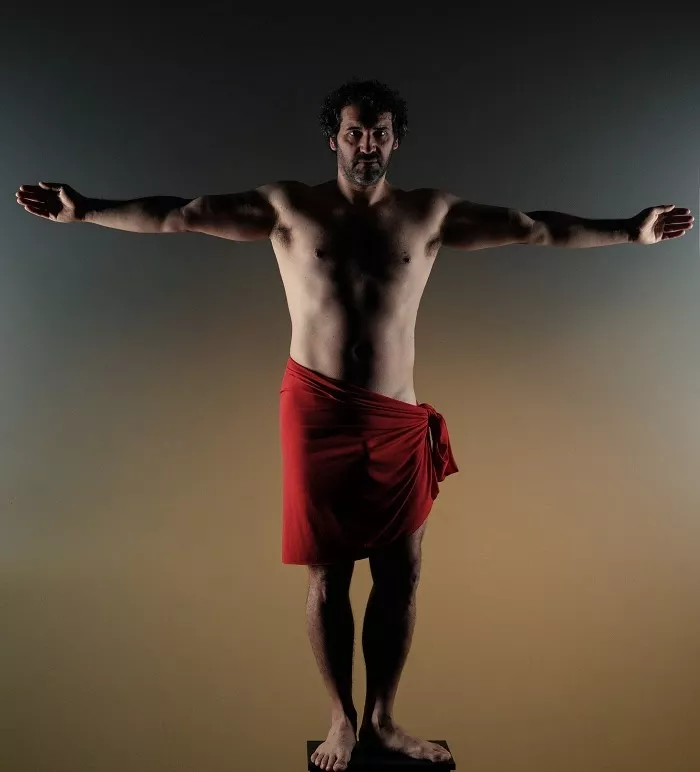 Μονόλογος εμπνευσμένος από το διάσημο έργο του Λεονάρντο Ντα Βίντσι, ο «Άνθρωπος του Βιτρούβιου», που δίνει σάρκα και οστά στον άντρα πίσω από το σχέδιο, αναδεικνύοντας τη μεταφυσική του διάσταση. Οι συμβολισμοί, οι αλληγορίες, τα αποκρυπτογραφημένα μηνύματα και οι κώδικες τον πλαισιώνουν, φωτίζοντας την ψυχοσύνθεση και τις αγωνίες του κατά τη διάρκεια των συναντήσεών του με τον Ντα Βίντσι στο ατελιέ του μεγάλου δημιουργού.