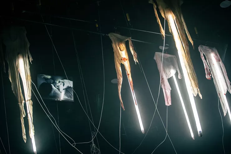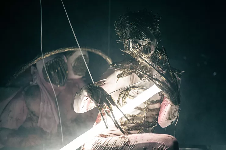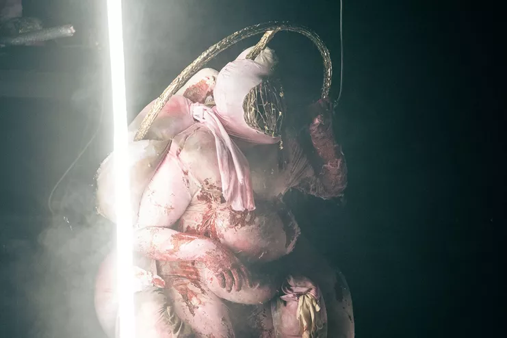 Μια εικαστική περφόρμανς που αντλεί από κοσμογονικούς μύθους παγανιστικών θρησκειών και του χριστιανισμού, συνδυάζοντας στοιχεία installation, τελετουργίας και ηλεκτρονικών ψαλμωδιών. Μια εξερεύνηση της αρχέγονης βίας που συνδέεται με τη δημιουργία, μέσα σε έναν χώρο που θυμίζει «τεχνολογική αγιογραφία». Μετά την πρώτη sold out παρουσίαση της στην Prague Quadrennial 2023 στο DISK Theatre, DAMU της Τσεχίας, η παράσταση επιστρέφει στην Αθήνα.