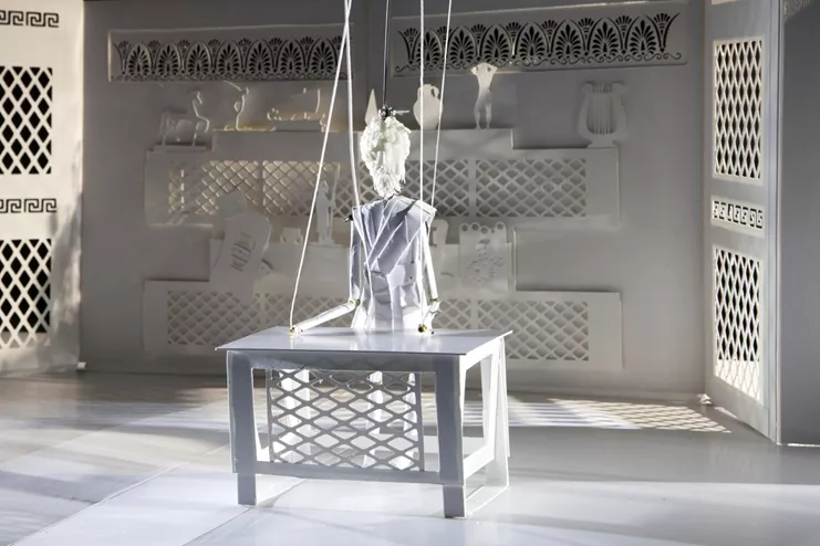 Η πρώτη χάρτινη τρισδιάστατη pop up παράσταση με κατασκευές, κούκλες, αντικείμενα φτιαγμένα με παραδοσιακές ιαπωνικές τεχνικές, μουσική και αφήγηση αναδεικνύει τον αρχαιοελληνικό μύθο από νέα οπτική.