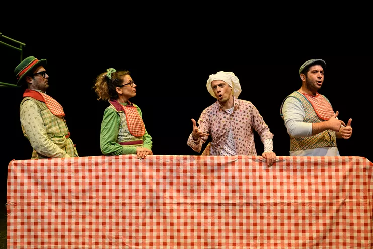 Ερμηνεύουν: Θ. Ζερίτης, Θ. Μεγαλόπουλος, Φ. Συμεωνίδης, Δ. Τίκου. Σκην.: Μ. Λιακατά, Ελ. Παπαναστασίου. Κοστ.: Δ. Μακαρούνη. Μουσ.: Άγγ. Αγγέλου. Για παιδιά ηλικίας από 3 ετών.