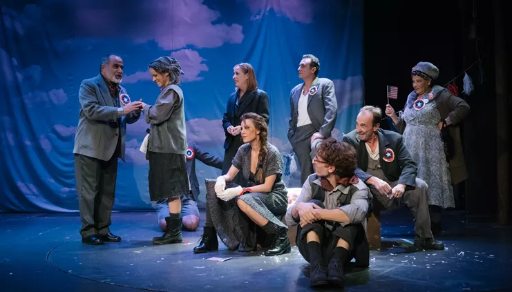 Ερμηνεύουν: Έλ. Τρίγγου, Στ. Μάινας, Θ. Κατσαφάδος, Ν. Βλαβιανού, Β. Αλεξανδρής, Αν. Νάτσιος, Φ. Παπαχριστοπούλου, Αλ. Μαυρόπουλος. Μετάφρ.: Αντ. Γαλέος. Σκην.: Θ. Μέλισσα. Κοστ.: Β. Σύρμα. Μουσ.: Στ. Γασπαράτος. Φωτ.: Μ. Μάσχα. Κατάλληλη για άνω των 15 ετών.