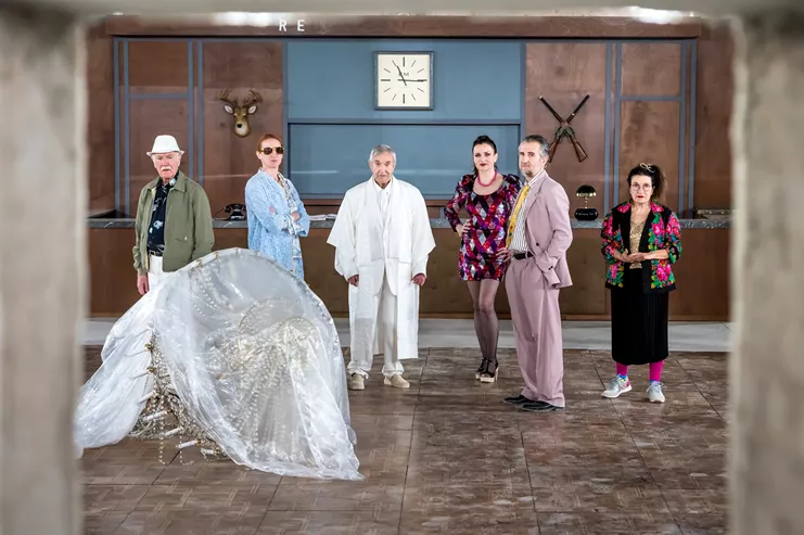 Ερμηνεύουν: Γ. Βογιατζής, Στ. Γουλιώτη, Κ. Καραμπέτη, Ιωάν. Κολλιοπούλου, Κ. Κορωναίος, Έκτ. Λυγίζος, Ρ. Οικονομίδου, Π. Παπαδόπουλος, Δ. Παπανικολάου, Κ. Σίμου, Απ. Τότσικας, Π. Τσιλίκα, Κ. Βέρρου, Σπ. Ντόγκας. Σκην.: Εύα Μανιδάκη. Κοστ.: Ιωάν. Τσάμη. Μουσ.: Θ. Οικονόμου. Φωτ.: Χρ. Θανάσουλα. Κατάλληλη για θεατές άνω των 18 ετών.