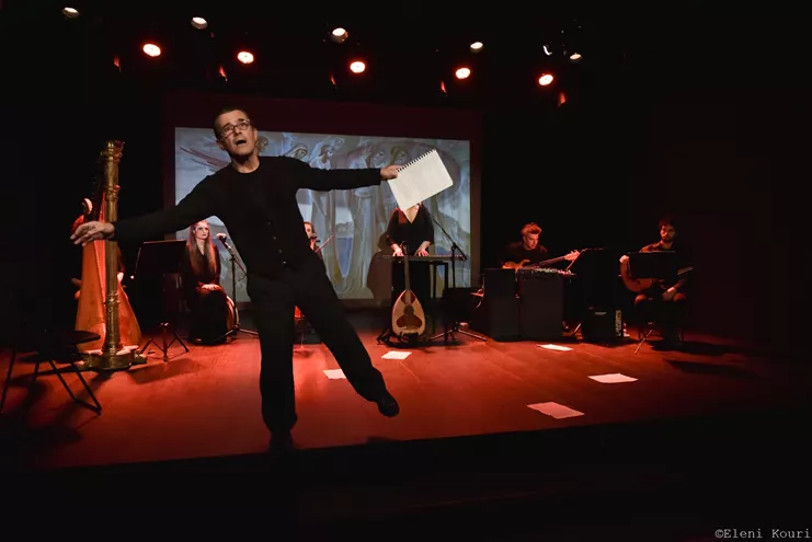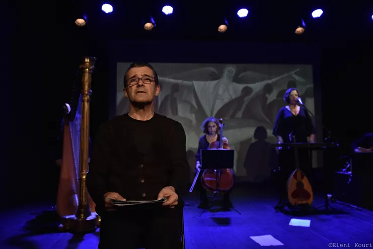 Mια μουσική παράσταση που συνομιλεί με την ψηφιακή ζωγραφική του Γιώργου Κόρδη που δημιουργείται ζωντανά, το πρόσωπο και το έργο του νομπελίστα Γιώργου Σεφέρη και μαρτυρίες προσφύγων.