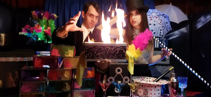 Ο Magicris και η Fidisia υπόσχονται εντυπωσιακά ταχυδακτυλουργικά κόλπα, από ομπρέλες που εμφανίζονται ως δι;a μαγείας και μαγικά φτερά που αλλάζουν χρώμα μέχρι αντικείμενα που αιωρούνται, φλέγονται και αλλάζουν σχήμα.