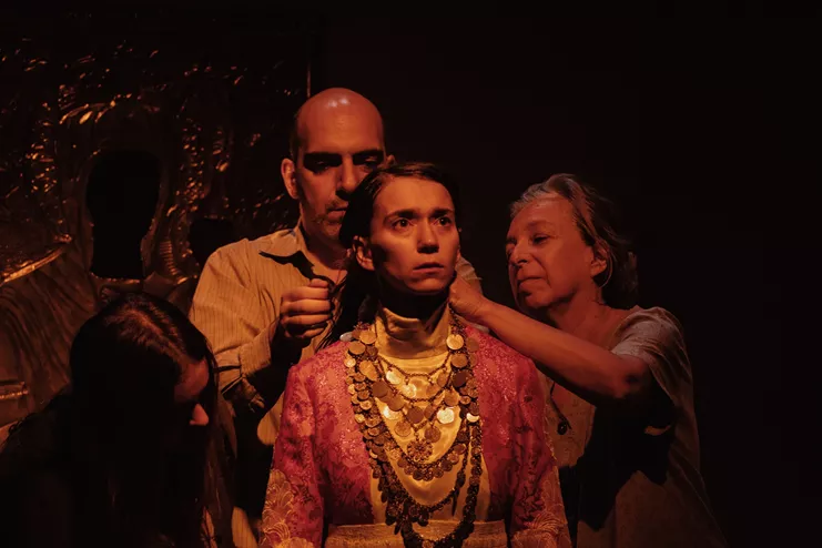 Ερμηνεύουν: Μ. Μπανούσι, Χρ. Βιδαλάκη, Μπ. Γαλιατσάτος, Ερ. Κιτζόγλου, Κ. Κρίστο, Ελ.-Άμπ. Νζάνγκα, Β. Σκοπετέα, Αλ. Χασάνι. Σκην.-κοστ.: Σ. Μελανός. Μουσ.: Εμ. Ροβίθης. Φωτ.: Τ. Παλαιορούτας. Προτείνεται για άνω των 16 ετών.