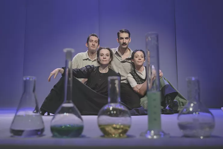 Το κείμενο έχει ως αφετηρία τη βιογραφία της Μαρί Κιουρί, την οποία συνδυάζει με στοιχεία μυθοπλασίας.