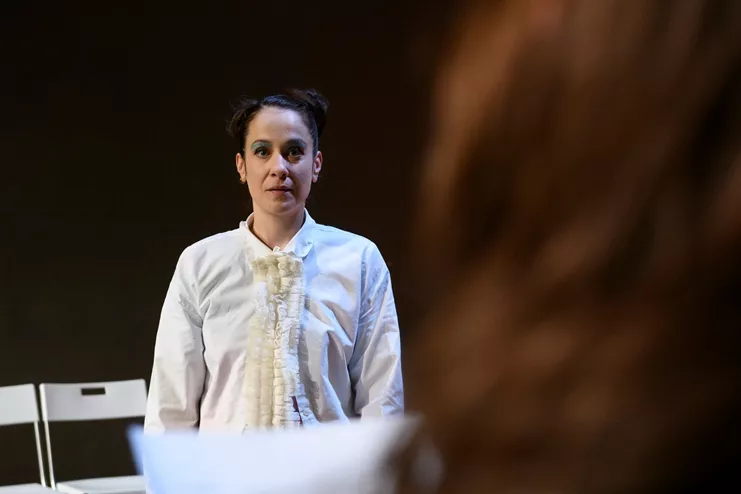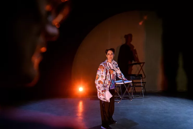 Ερμηνεύει: Μ. Αργυρίδου. Σκην.-κοστ.: Ελ. Στρούλια. Φωτ.: Σ. Παπαλεξανδροπούλου.