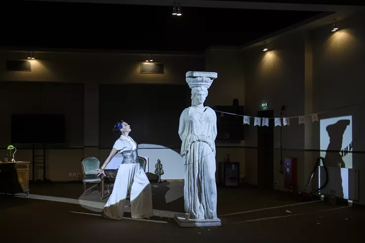 Στο σπαρταριστό έργο του Γ. Καπουτζίδη που είναι αφιερωμένο στη μεγαλειώδη ελληνική ικανότητα να μπλέκουμε σε κωμικοτραγικές καταστάσεις, η περίφημη Καρυάτιδα επιστρέφει από το Βρετανικό Μουσείο με μια υποδοχή «σκέτη κωμωδία». Σαν άλλη αγαπημένη φίλη, θεία, χαμένη ξαδέρφη από το εξωτερικό, την περιμένει όλη η χώρα με τεράστια προσμονή. Η υποδοχή της, όμως, δεν θα είναι όπως τη φανταστήκαμε, όπως τη σχεδιάσαμε, όπως την ονειρευτήκαμε.