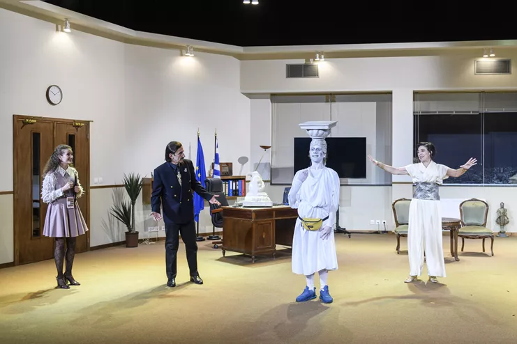 Πικρή κωμωδία για τη διαφθορά του πολιτικού συστήματος, που χαρίζει σπαρταριστό γέλιο όσο και γενναίες δόσεις… κατάθλιψης, χωρίς να απουσιάζουν ο διδακτισμός ή η απεύθυνση στο εύκολο συναίσθημα. Ανεβαίνει σε ανάλογης ποιότητας παράσταση, με την ξεχωριστή, κεντρική ερμηνεία της Αγορίτσας Οικονόμου. | Διαβάστε ολόκληρη την κριτική