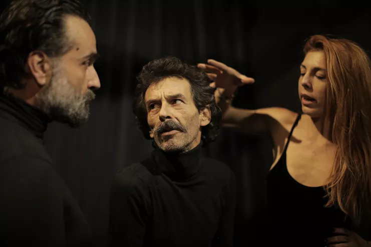 Ερμηνεύουν: Ιωάν. Ζωγράφος, Κ. Καραγάνης, Σ.-Ανθ. Φωτίδη, Π. Τσαπαλιάρης. Σκην.-κοστ.: Ελ. Καραμέρου. Φωτ.: Σ. Αδαμοπούλου. Κατάλληλη για άνω των 16 ετών.