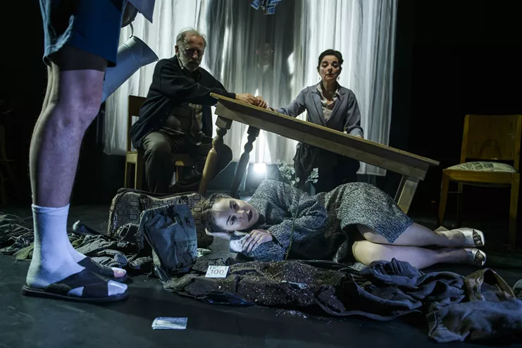 Στη βραβευμένη παράσταση που συνεχίζεται για τρίτη χρονιά, μέσα από ένα υπερρεαλιστικό πλαίσιο διαδραματίζεται η ρεαλιστική ιστορία του Βίγκαν και της Γιάσμινσκα, που επαναπατρίζονται στο χωριό τους μετά τη λήξη του εμφυλίου αναζητώντας τη σορό του Βίμπκο, του χαμένου τους γιού που πολεμούσε. Η τοπική κοινωνία τους αντιμετωπίζει με καχυποψία αναζητώντας τρόπους να εκμεταλλευτεί οικονομικά το πένθος τους. Οι άνθρωποι, ζωντανοί ή νεκροί, δεν είναι τίποτα άλλο παρά μέσα εκμετάλλευσης για την παραγωγή κέρδους. Η μοναδική πηγή εσόδων του ζευγαριού είναι η κόρη τους, Ίντα, η οποία κατά τη διάρκεια του εμφυλίου μπλέχτηκε σε κύκλωμα σωματεμπορίας και πλέον εκπορνεύεται στην κεντρική Ιταλία. Η Ίντα βιώνει μια παράλληλη ιστορία εξευτελισμού της ανθρώπινης ύπαρξης.