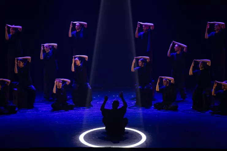 Εμπνευσμένη από τη φυσική αρμονία και τις γεωμετρικές κινήσεις των σμηνών πουλιών, η παράσταση-φαινόμενο είναι μια ωδή στη συλλογικότητα και την αρμονία.