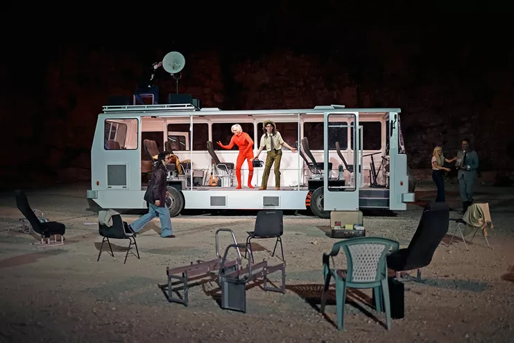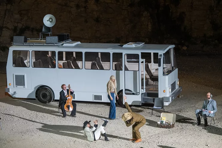 Σε συμπαραγωγή με το Φεστιβάλ Αθηνών Επιδαύρου παρουσιάζεται η θεαματική παράσταση του Φιλίπ Κεν και της ομάδας του μετά τη θριαμβευτική της πρεμιέρα στην Αβινιόν. Στην τέταρτη επίσκεψή του στην Ελλάδα ο ανατρεπτικός σκηνοθέτης εμπνέεται από τον διάσημο αναγεννησιακό πίνακα του Ιερώνυμου Μπος «Ο κήπος των επίγειων απολαύσεων» και δημιουργεί ένα αλληγορικό υπερθέαμα για την κλιματική αλλαγή, την παρέμβαση του ανθρώπου στη φύση αλλά και τη συλλογικότητα, ισορροπώντας μεταξύ ουτοπίας και δυστοπίας, μακαριότητας και λαγνείας, αινιγματικού και γκροτέσκο. Με φόντο τη δεκαετία του ‘70 κι έναν αυτοσχέδιο καταυλισμό εξελίσσεται η παράσταση που θέτει φιλοσοφικά και πανανθρώπινα ερωτήματα, αξιοποιώντας αφηγήσεις, φράσεις, αποσπάσματα που οι ηθοποιοί χρησιμοποιούν - από Σαίξπηρ για παράδειγμα και ιστορικούς της Τέχνης μέχρι τη σύγχρονη ποιήτρια Λορά Βασκέζ. Οι πρωταγωνιστές παίζουν μουσική, τραγουδάνε, διαλύουν το λεωφορείο και διαλύονται οι ίδιοι σε ομάδες, άνθρωποι που ενώνονται και χωρίζονται.
