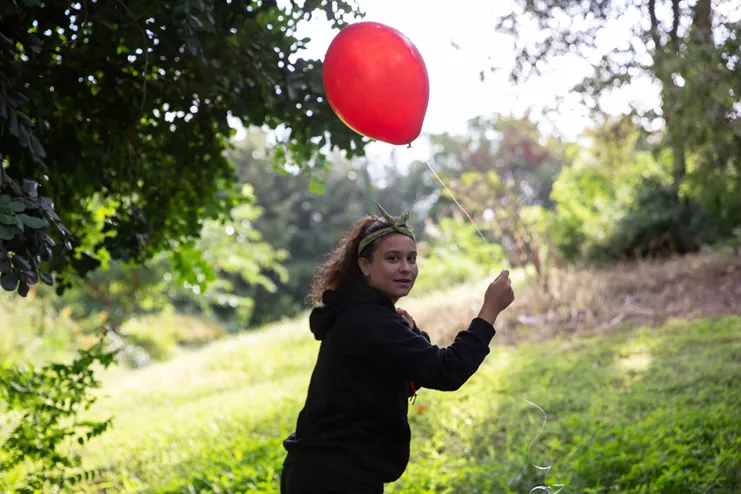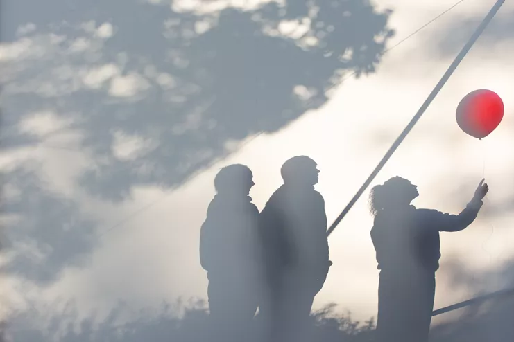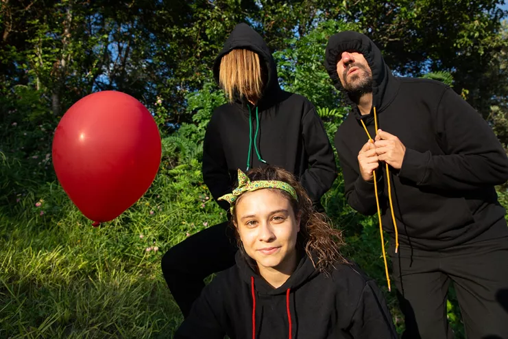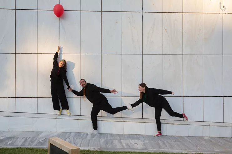 Τρεις ηθοποιοί σε ένα «πατάρι» ζωντανεύουν την ιστορία της Μαριλούς και του μπαλονιού της, χρησιμοποιώντας την εντυπωσιακή τεχνική της πλατφόρμας.