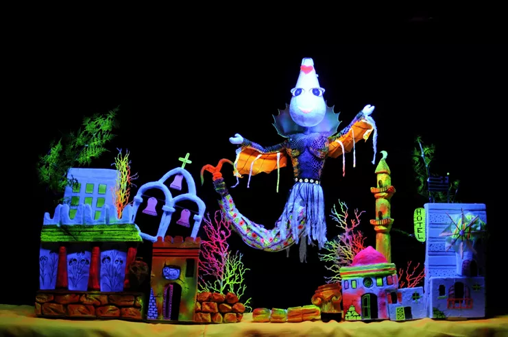 Με πρωταγωνιστές πραγματικά και μυθικά πλάσματα της θάλασσας, το έργο της Φρόσως Χατόγλου, που γράφτηκε τη δεκαετία του '80 και μιλάει για τις έννοιες της δημοκρατίας, της αλληλεγγύης και της συνεργασίας. Αυτό που κάνει την παράσταση της ομάδας να ξεχωρίζει είναι η πρωτοποριακή της τεχνική που συνδυάζει το μαύρο θέατρο με τον ζεστό φωτισμό και τις κούκλες με έντονα χρώματα, δημιουργώντας έτσι έναν ολόκληρο κόσμο επί σκηνής. Σημαντικό ρόλο παίζει και ο διαδραστικός χαρακτήρας της παράστασης που προσκαλεί τους μικρούς θεατές να βοηθήσουν τα ψαράκια να επαναστατήσουν ενάντια στον Ψαροτρομάρα και τα σχέδια του να φτιάξει ένα μεγάλο παλάτι γκρεμίζοντας τα σπίτια τους στον βυθό της Ψαροχώρας.