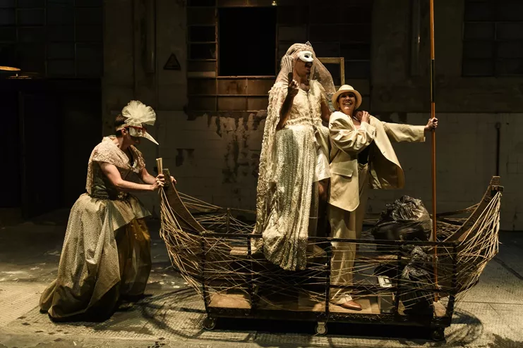 Η παράσταση που υπογράφει (κειμενικά και σκηνοθετικά) ο Τσέζαρις Γκραουζίνις, βασισμένος στον σαιξπηρικό "Έμπορο της Βενετίας", έχει αισθητική ταυτότητα και ωραία στοιχεία, όμως δεν αποκωδικοποιούνται πλήρως οι προθέσεις της. | Powered by Uber Διαβάστε ολόκληρη την κριτική