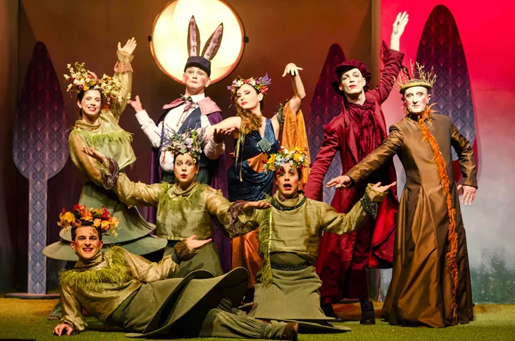 Λίγο πριν γίνουν οι γάμοι του Θησέα και της Ιππολύτης, η Ερμία αρνείται την επιθυμία του πατέρα της να παντρευτεί το Δημήτριο, γιατί ο αγαπημένος της είναι ο Λύσανδρος. Οι δυο τους αποφασίζουν να το σκάσουν τη νύχτα στο δάσος. Η καλύτερη φίλη της, η Ελένη, μαρτυράει το μυστικό στον Δημήτριο και τους ακολουθούν. Στο δάσος καταφθάνουν ο Βασιλιάς των Ξωτικών, ο Όμπερον, η βασίλισσα Τιτάνια, οι νεράιδες και το λατρεμένο ξωτικό των παιδιών, ο σκανδαλιάρης Πουκ. Έτσι ξεκινάει ένα απίστευτα κωμικό γαϊτανάκι. Και σαν να μην έφταναν όλα αυτά, μια ομάδα μαστόρων που ετοιμάζουν μια παράσταση-δώρο για τους γάμους, τριγυρίζουν κι αυτοί ανυποψίαστοι στο δάσος.