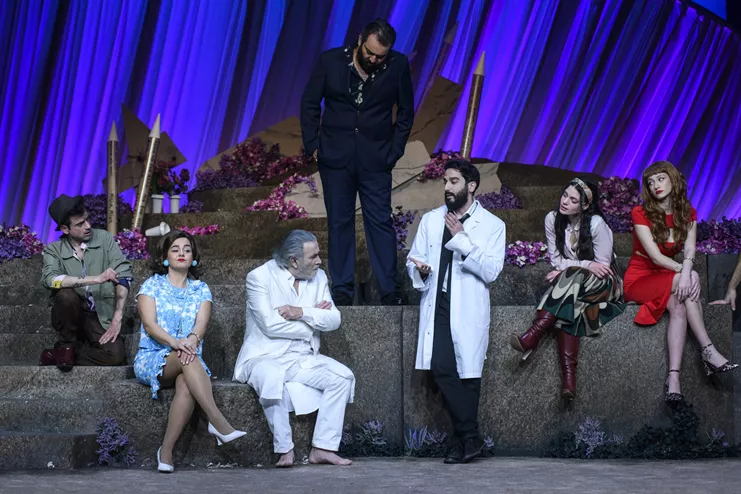 Ερμηνεύουν: Λ. Λαζόπουλος, Ελ. Κωνσταντινίδου, Δ. Ατζαράκης, Μ. Καζαμίας, Κ. Μουταφτσής. Μουσικός επί σκηνής: Θ. Μάντζαρης (πιάνο). Σκην.: Μ. Τσαγκάρη. Κοστ.: Ιωάν. Τσάμη, Ιφ. Νταουντάκη. Μουσ.: Β. Πράπας. Φωτ.: Π. Μαθιέλης.