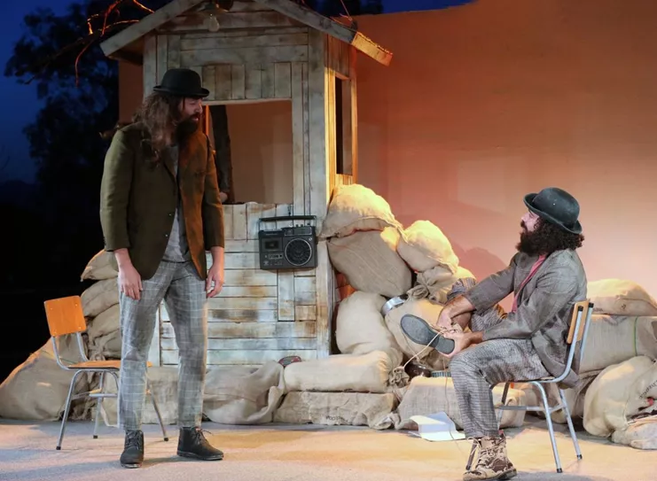 Η παράσταση επιχειρεί για πρώτη φορά να παρουσιάσει το εμβληματικό έργο του Σάμιουελ Μπέκετ στην κυπριακή διάλεκτο, τοποθετώντας το την ίδια στιγμή στην πράσινη γραμμή της Λευκωσίας, στο πλαίσιο της Εβδομάδας Κυπριακού Θεάτρου.