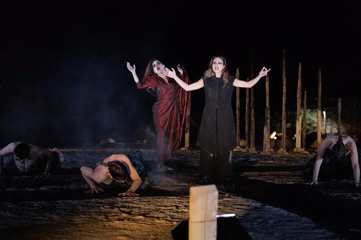 Ερμηνεύουν: Ρ. Μονάκη, Έβ. Ασουάντ, Μπ. Αλεφάντης, Ά. Μαρκά Μπονισέλ, Έλ. Ιγγλίζ, Ντ. Παπαγεωργίου. Μετάφρ.: Γ. Μπλάνας. Σκην.- κοστ.: Κ. Παπαγεωργίου. Ηχητ. σχεδ.: Ζ. Σέγκλιας. Φωτ.: Κ. Μπεθάνης.