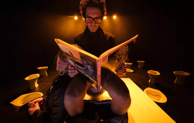 Σε μία από τις πλέον εκκεντρικές και αισθητικά ενδιαφέρουσες παραστάσεις της σεζόν, το βρετανικό σινεμά, οι τηλεοπτικές σειρές μυστηρίου, τα παιχνίδια ρόλων και η λογοτεχνία του φανταστικού επιστρατεύονται για να καταδείξουν τη δυστοπία της σύγχρονης πραγματικότητας. Διαβάστε ολόκληρη την κριτική