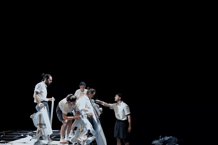 Οι «Βάκχες» του Ευριπίδη και ο «Σπαραγμός» της Μαργαρίτας Λυμπεράκη ενέπνευσαν έναν κόσμο που φτιάχνεται από χαρτί επί σκηνής, σύμβολο της θνητότητας και της παροδικότητας της ζωής, του πένθους και της απώλειας. Η παράσταση, που πρωτοπαρουσιάστηκε στο Βυζαντινό μουσείο Άργους στο πλαίσιο του προγράμματος «Όλη η Ελλάδα ένας Πολιτισμός», επιχειρεί να αφηγηθεί την ιστορία του μυθικού βασιλιά Πενθέα ή αλλιώς εκείνου που ονομάζει «άνθρωπο των θλίψεων» μέσα από την κίνηση και τη φωνή των ερμηνευτών στον ειδικά διαμορφωμένο εξωτερικό χώρο του βιομηχανικού πάρκου.