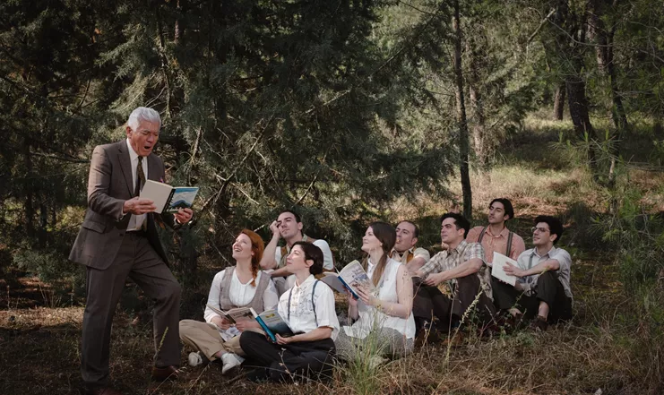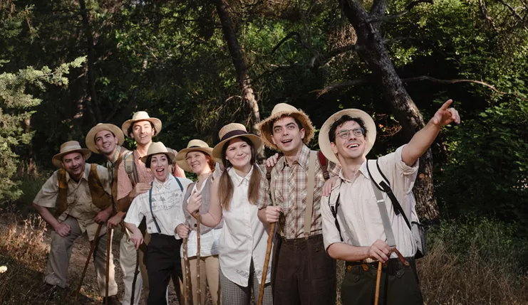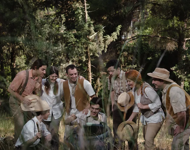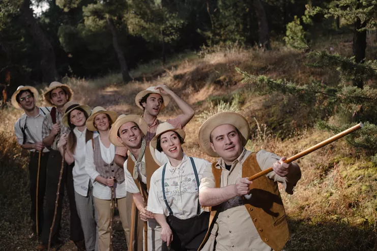 Τα παιδιά μιας χορωδίας διαβάζουν το ομότιτλο βιβλίο και επειδή γοητεύονται τόσο πολύ από αυτό αποφασίζουν να περάσουν ένα ολόκληρο καλοκαίρι στα ορεινά της Ευρυτανίας μακριά από τον πολιτισμό και την τεχνολογία. Στόχος τους είναι να ζήσουν και αυτά τις περιπέτειες και τις όμορφες στιγμές στη φύση που έζησαν και οι ήρωες των «Ψηλών Βουνών». Η εξόρμηση των παιδιών θα τους βοηθήσει να κατανοήσουν τη φύση και την οργάνωση μιας μικροκοινωνίας, αλλά και να γνωρίσουν τον εαυτό τους και τις δυνατότητές τους. Μαθαίνουν τη ζωή των βοσκών, την τραχύτητα αλλά και την ομορφιά των βουνών και τις λαϊκές παραδόσεις, σε μία παράσταση γεμάτη μουσικές.