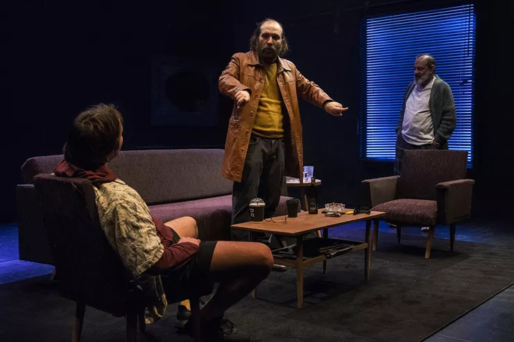 Ερμηνεύουν: Αντ. Καφετζόπουλος, Θ. Σκυφτούλης, Γ. Καφετζόπουλος. Σκην: Γ. Χατζηνικολάου, Δ. Σπηλιώτη. Κοστ.: Μ. Αναματερού. Μουσ.: Φ. Σιώτας. Φωτ.: Αντ. Παναγιωτόπουλος.