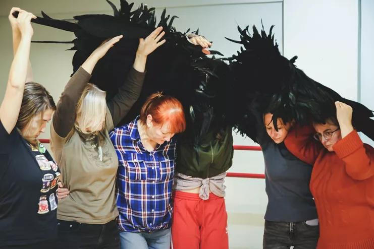 Χορεύουν: Λ. Χαμηλοθώρη, Π. Κόλια Πέτερσεν, 11 γυναίκες από το Melissa Network, το δίκτυο για μετανάστριες/προσφύγισσες που προωθεί την ενδυνάμωση. Μουσικός επί σκηνής-μουσ.: Θ. Πολυμενέας-Λιοντήρης. Φωτ.: Ελ. Αλεξανδροπούλου.