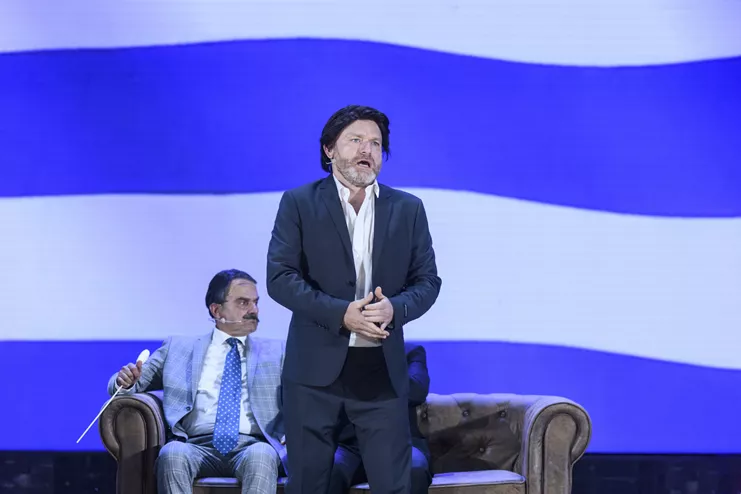Η σύγχρονη επιθεώρηση, που έχουν παρακολουθήσει μέχρι σήμερα 44.000 θεατές, συνδυάζει τραγούδι, χορό και σάτιρα με 12μελή ζωντανή ορχήστρα και 20μελές μπαλέτο και αντλεί τη θεματολογία της από την παράνοια της νεοελληνικής πραγματικότητας.