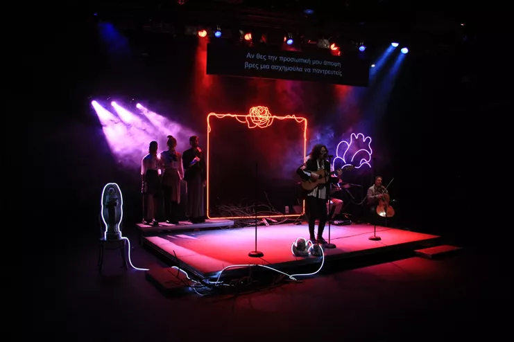 Το «Αίμα της αγάπης», η μελέτη του Παντελή Μπουκάλα για το ερωτικό δημοτικό τραγούδι, και δοκίμια του προηγούμενου αιώνα ενέπνευσαν την παράσταση-soundtrack πάνω στον έρωτα και τις σχέσεις των φύλων.