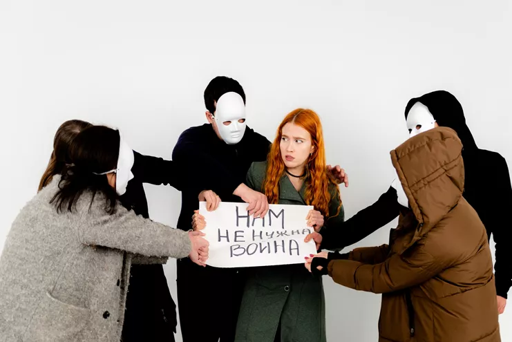 Μια αντιπολεμική παράσταση που στηρίζεται σε κείμενα και μαρτυρίες Ρώσων πολιτών κατά του πολέμου στην Ουκρανία αλλά και αποσπάσματα λογοτεχνικών έργων.