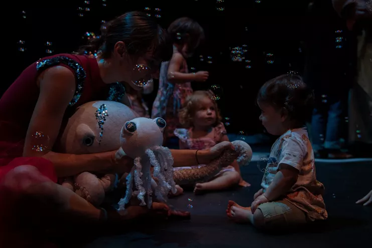 Οι δύο μητέρες και καλλιτέχνιδες Ξένια Αηδονοπούλου και Γεωργία Τέγου δημιούργησαν μια χοροθεατρική παράσταση, με σύμμαχο μια διακεκριμένη ελληνοβρετανική δημιουργική ομάδα. Πρόκειται για το μαγικό ταξίδι μιας μπαλαρίνας που ξυπνά από έναν ύπνο γεμάτο όνειρα στον ωκεανό, γεμάτο ήχους, χρώματα και αμέτρητες μπουρμπουλήθρες. Γονείς και βρέφη βρίσκονται σε ένα κύκλο επί σκηνής, στη βρεφική παράσταση που διεγείρει τη φαντασία των παιδιών και όλες τις αισθήσεις τους.