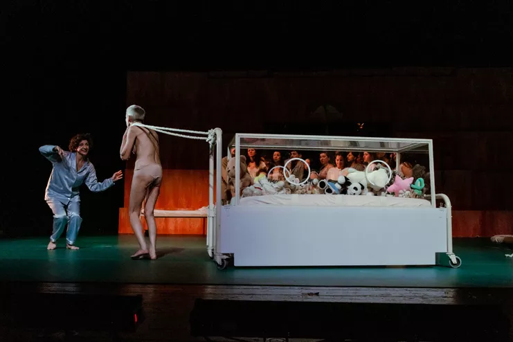 Το τρίπτυχο θάνατος-ύπνος-όνειρα αλλά και το πότε «ανοίγουμε τα παράθυρά μας να αντικρίσουμε κατάματα τους φόβους αλλά και τις πιο βαθιές μας επιθυμίες» απασχολούν τους καλλιτέχνες με και χωρίς αναπηρία της κολεκτίβας «Εν δυνάμει» σε μια παράσταση «λίγο φευγάτη, σαν μέσα σε όνειρο, ρευστή, συνειρμική, πολύχρωμη και σκοτεινή, που λειτουργεί ως παραμορφωτικός καθρέφτης των δικών μας φαντασμάτων». Αυτά είναι τα ερωτήματα που απασχολούν την πολυμελή ομάδα, που μετά από πολλά χρόνια εμπειρίας πάνω στη δημιουργία παραστάσεων που έχουν τη δύναμη να μετατρέπουν το προσωπικό σε συλλογικό, επιλέγει για ακόμη μία φορά να μιλήσει για θέματα που συνήθως αποφεύγουμε.