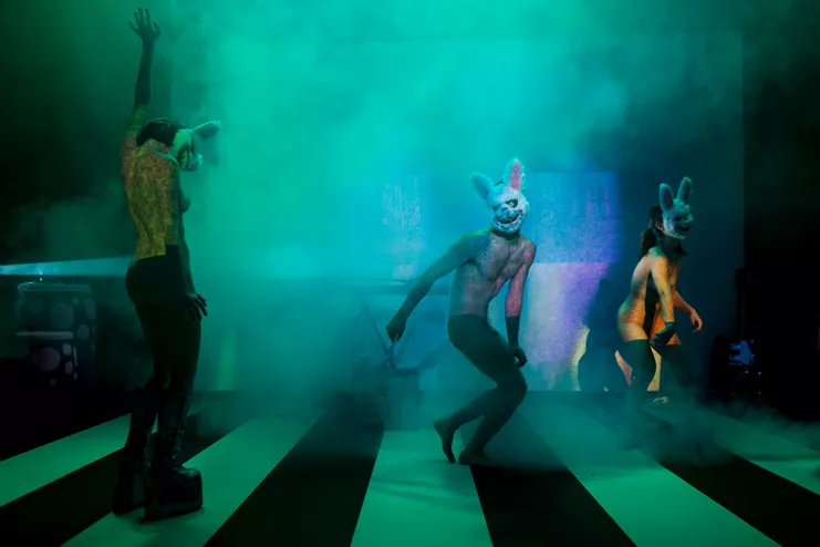 Ερμηνεύουν: Στ. Ιωάννου, Τζ. Πακίτσας, Σ. Πριόβολου, Γκ. Σάλομον. Σκην.-κοστ.: S. Messer. Μουσ.: Γκ. Σάλομον. Φωτ.: Π. Λάμπης. Χορογρ.: Π. Μαλακτός. Βίντεο: Ίρ. Βρεττού. Κατάλληλο για άνω των 18 ετών.