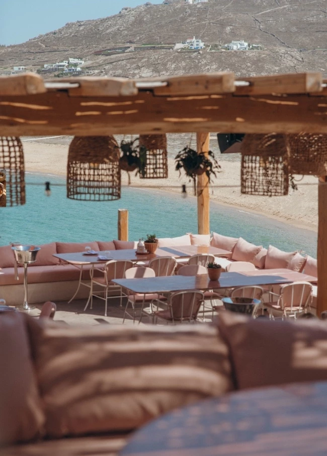 Στα τρία επίπεδα με την 60s και 70s αισθητική θερέτρων της Μεσογείου και την boho chic ατμόσφαιρα στην άκρη της ακτής, οι επισκέπτες απολαμβάνουν κάθε ώρα της ημέρας την πανοραμική θέα προς τον κυκλαδίτικο ουρανό και τα κρυστάλλινα νερά του Αιγαίου. Στον χώρο του lounge με τα day beds και τις σεζλόνγκ οι επισκέπτες μπορούν να χαρούν τη μουσική των resident DJs και τα ποτά που βγαίνουν από το μπαρ, συνδυάζοντας με τις βουτιές τους στην παραλία.